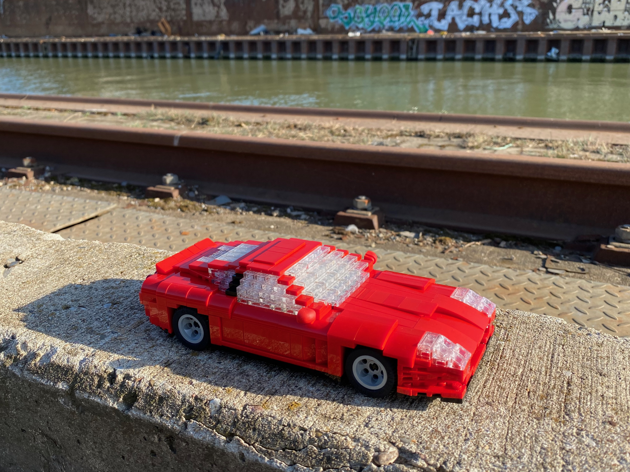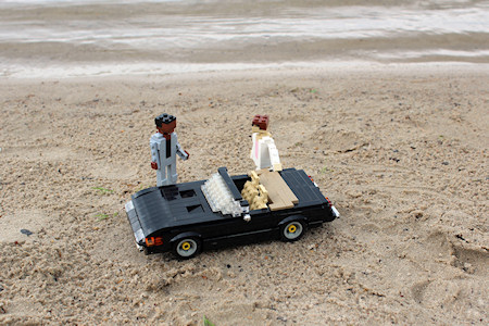 Inspired by the 80's Computergame Outrun, I've build this Ferrari Testarossa driven by a guy with his beautiful long- and blond-haired girlfriend.