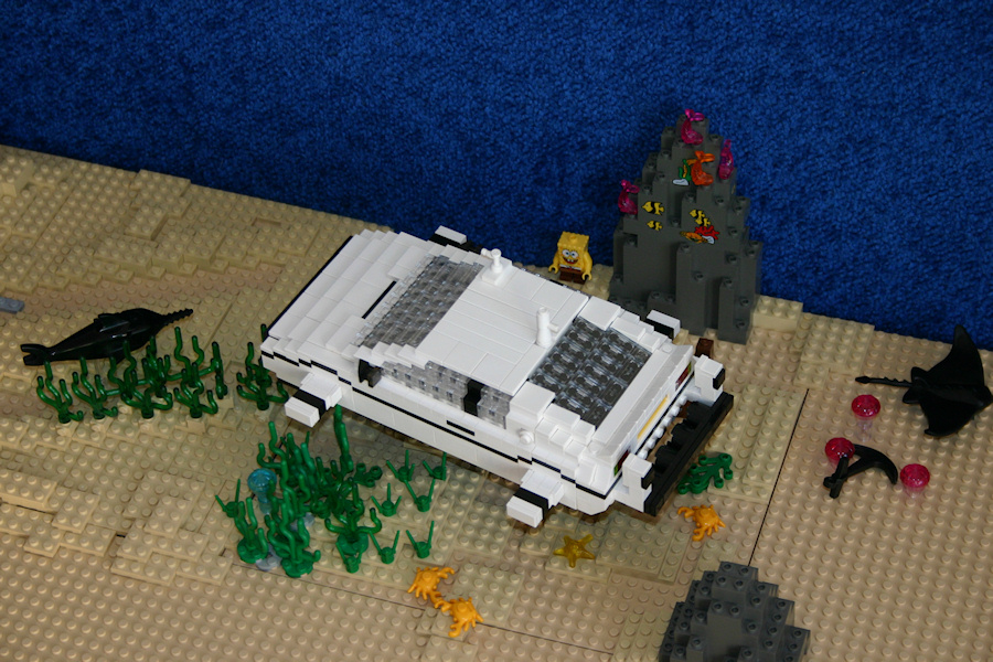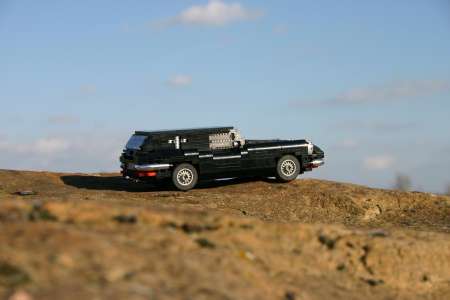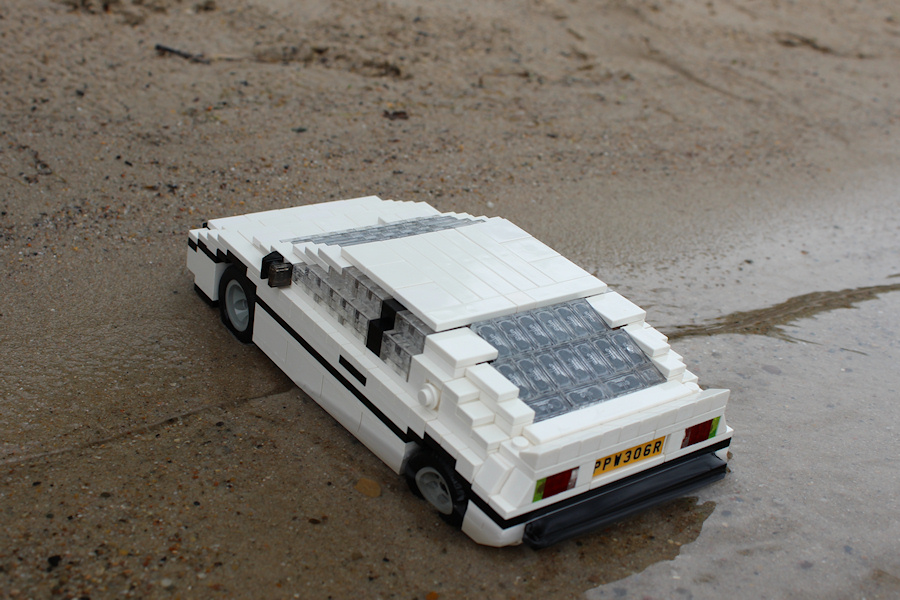 The body of this model is build completely with pearl light gray bricks. This is a challenge for itself, because there were no headlight bricks, or slopes available - just standard basics. But it's the best color for a car with a stainless steel surface.