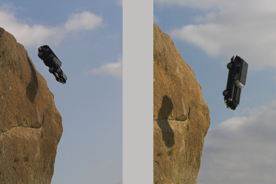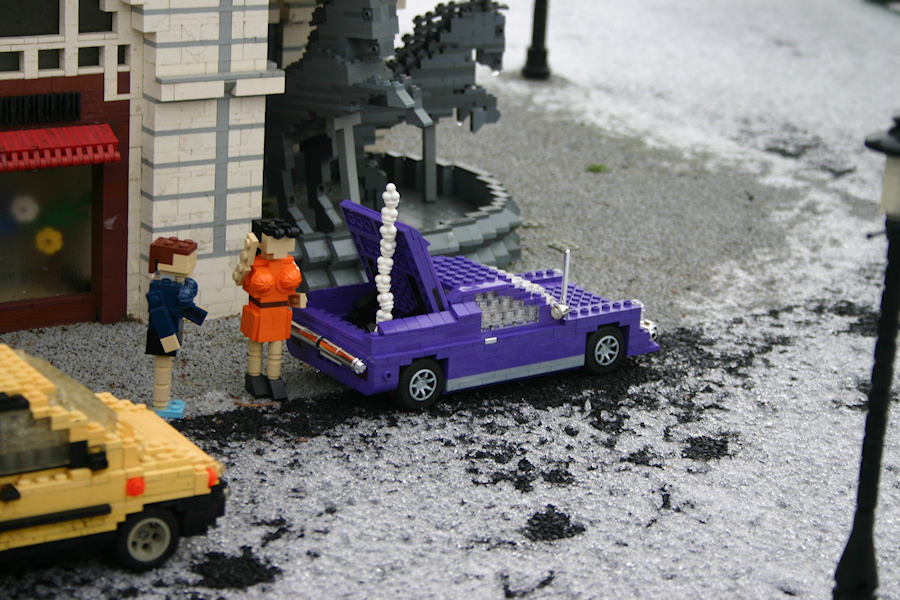 Don't worry, no LEGO was harmed during this photo session. Sadly one of the real Movie cars was really thrown down the cliff :(