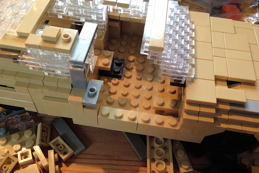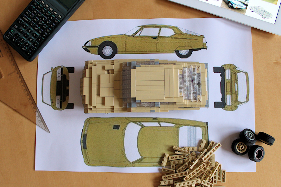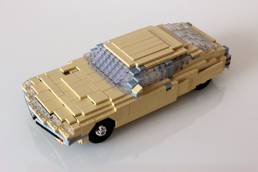 When you are searching for photos, you often find the SM in a golden colour, or a nice shade of blue. Gold is obviously also a problem within the LEGO colour palette, but blue would work quite well. So I decided to use something completely different: tan. Tan fits perfectly to the 70's and it also means that I don't have to build a boring German taxi to get a model in this colour (and believe me, German taxis are boring). Pleased that there are incredible loads of elements available in tan.