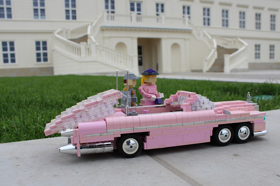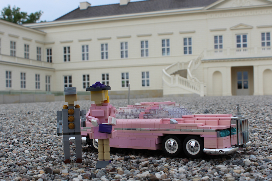 After finishing this beauty there was the need for some decent photos. Since there are just gas stations and diners to be found in Brick-Valley, it became clear that this was not an appropriate background for a Rolls Royce. Even Brick-Valley's the town hall was not an option. So a nice real-life location was found at the royal gardens of Herrenhausen. Royal sounds way better, doesn't it? Palace, fountains and statues that all seemed to be acceptable.