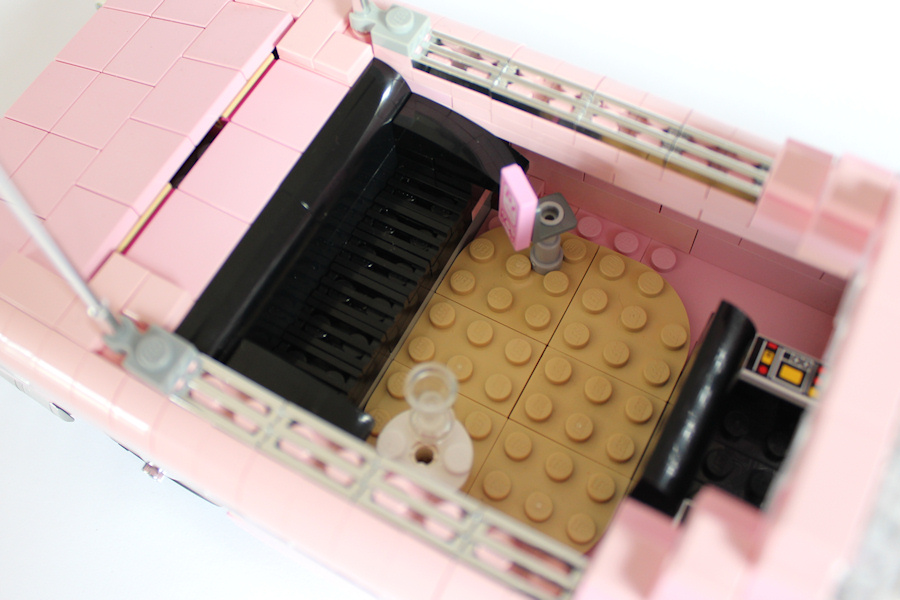 The canopy could be opened to show the very comfortable seat - no, hang on - it's more a kind of armchair, or couch and not just a seat. You might also discover the pink mp3 player (a bit ahead of the Thunderbird's time line, but it works so great at this place) and the drivers seat surrounded by all that fancy control elements for all the cool gadgets: Oil slick dispenser, grappling hooks, outriggers, ... Just the stuff for your daily needs.